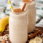 A creamy and refreshing Banana Bread Smoothie that combines ripe bananas, coconut milk, creamy vanilla yogurt, oats, and a hint of cinnamon for a delicious and nutritious treat perfect for breakfast or a snack.